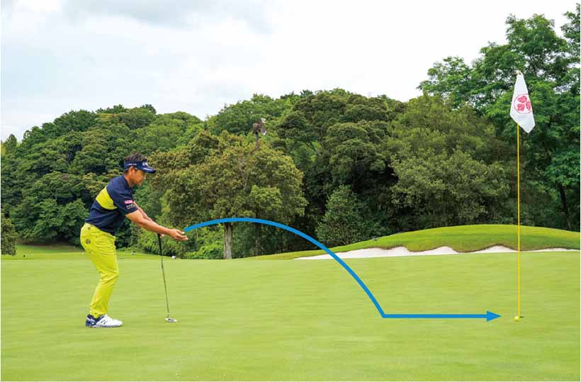 キャッチボールで相手が遠くにいるときは、腕を大きく速く振り、ボールスピードを上げる。近くにいるときは、小さく遅く振り、ゆっくり投げますよね。パットも同じ感覚で打ったほうが、距離感が合うというのが私の考え方です。