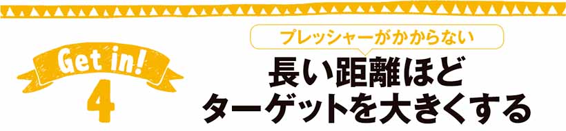 その理由は、ターゲットを絞ってシビアに狙うと、繊細なタッチが求められるぶん、力が入り、体の動きが硬くなってしまうからです。