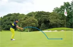 ゴミ箱にゴミを放り投げるように、下手投げでボールをコロがす。練習グリーンで実際に投げてみるのも効果的。