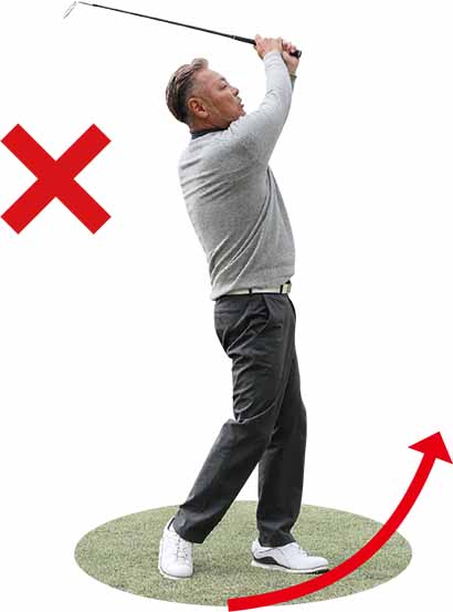 フィニッシュを高くするとヘッドが下から入るのでダフりやすい。