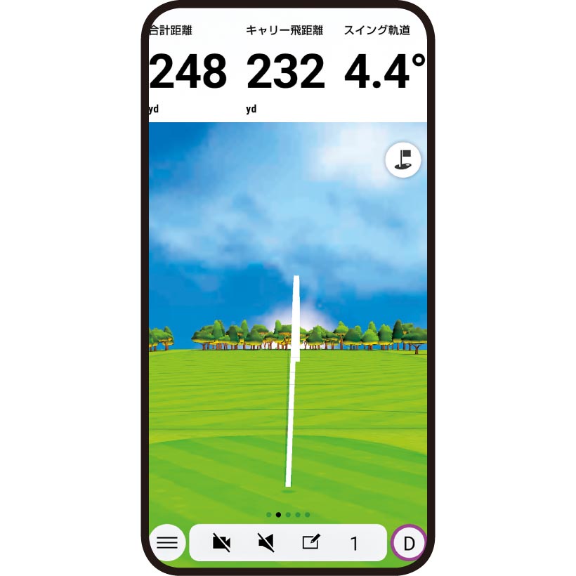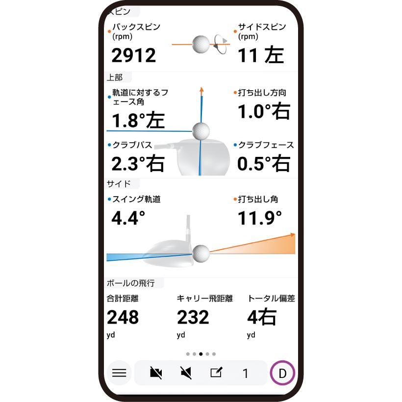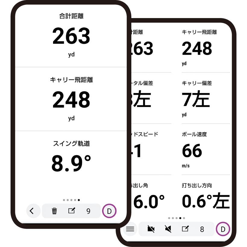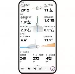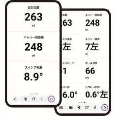 飛距離やヘッドスピードなど、主要な数値のみを大きく表示できる。
