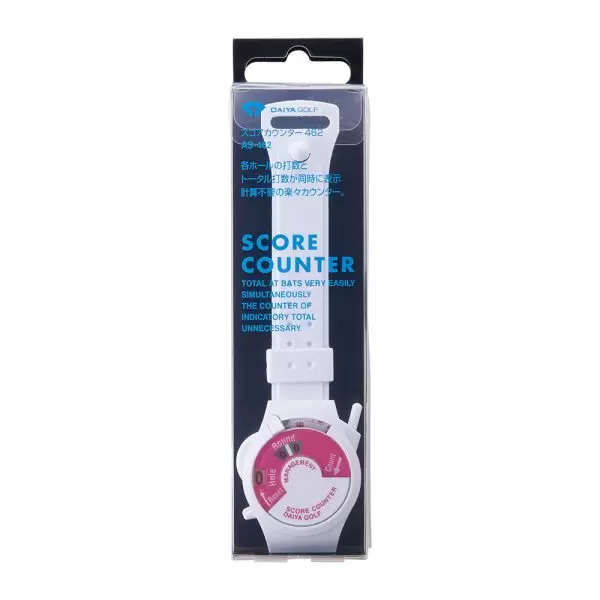 ダイヤゴルフ スコアカウンター462は、さわやかな白をベースにピンクか、ブラックでアクセントを付けたウオッチタイプのスコアカウンター。各ホールの打数(10打まで)とトータルの打数(99打まで)が同時に表示されるシンプルなアナログ設計です。