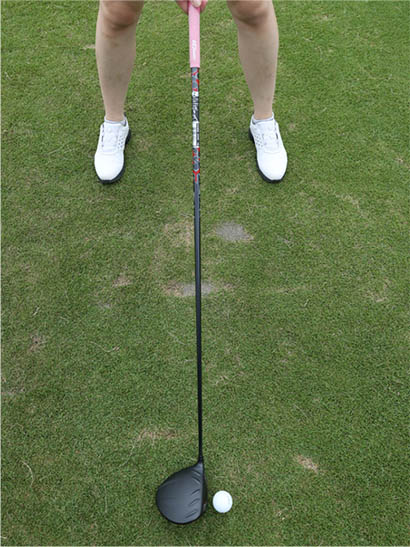 ここではスタンス全体の向きではなく、両足のツマ先の向きについて説明したいと思います。スクエアスタンスの基本は両足のツマ先を10〜20度くらい開いて軽い逆ハの字に立ち、両足のツマ先を結ぶラインがターゲットラインと平行になるような体勢です。バックスイングで腰や右ヒザがスエーしやすい人は右足のツマ先を真っすぐ向ける手もありますが、そうすると右下半身が窮屈に感じられて返って腰や右ヒザが右に流れやすくなる人もいますから、自分なりに右ツマ先の向きを調整してスエーしにくい立ち方を見極めましょう。