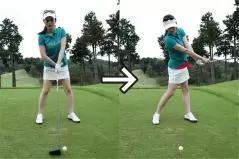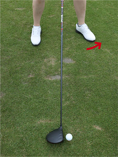 バックスイングでは深い捻転を作れるけど、インパクトに詰まり感覚があってフォロースルーの振り抜きが今イチだなと感じている人もいるでしょう。これを解消するにはスクエアスタンスのまま、左ツマ先を30〜45度くらいまで開くと効果的。左の骨盤が目標に対して開いた形となり、インパクトからフォロースルーにかけての腰の回転がスムーズです。ヘッドスピードを上げたい人にもピッタリですし、インパクトで腰の回転が止まって両手が急激に返ってしまうためにチーピンがよく出る人のスイング矯正法としても役立ちます。
