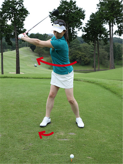 右ツマ先を開けばバックスイングで深い捻転が作れる