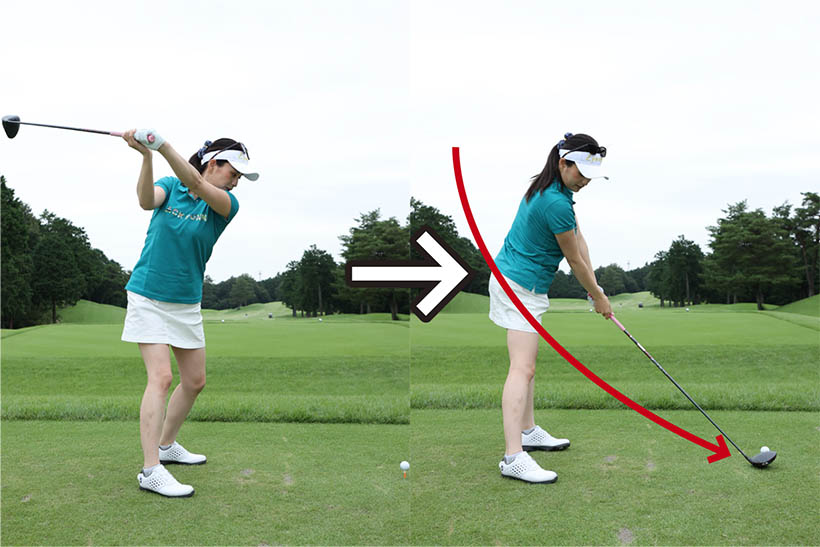右ツマ先を開いて構えるとバックスイングの捻転が深くなり、ダウンスイングでのカラダの早い開きを抑えられます。そのためクラブをインサイドから振り下ろしやすく、球がつかまりやすい。流行りのシャローイングがしやすいんです。結果としてアウトサイド方向に振り抜きやすくてスライスが止まるというわけです。スライスが生じる一番の原因はインパクト時のフェースの向きなので、スタンスだけが直接影響するわけではありませんが、スライス防止の策として工夫してみるといいと思いますよ。