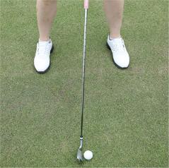 パットではクローズスタンスに構えるとテークバックの軌道が安定しにくくなるので、あまりオススメしません。また距離感が合いにくいという人は振り子感覚でストロークしやすいように、スタンスを狭めにしましょう。ワイドスタンスの場合、ストローク中に下半身が左右に動きやすく、ストロークの支点も動きやすくなります。狭めのスタンスならカラダの全体が一本の太い軸とイメージしやすく、ストロークの支点も固定しやすいと思います。どんなクラブでも絶対的なスタンスはないに等しいので、自分のスイングにマッチした立ち方、自分のミスを解消するスタンスを見つけてくださいね。