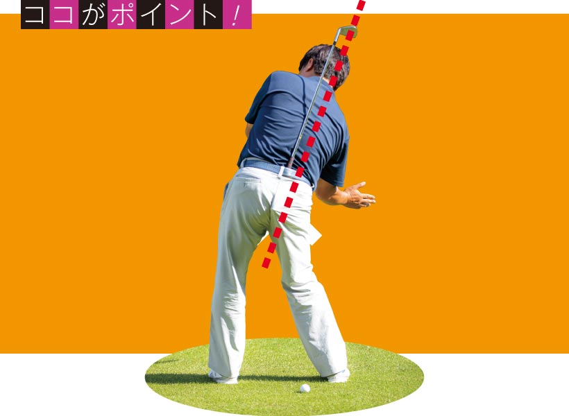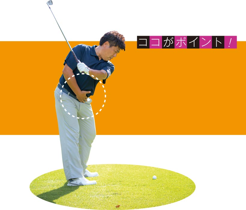 調子が悪くなると右に傾きやすいインパクトでは顔、首、おヘソ、お尻を一直線にする