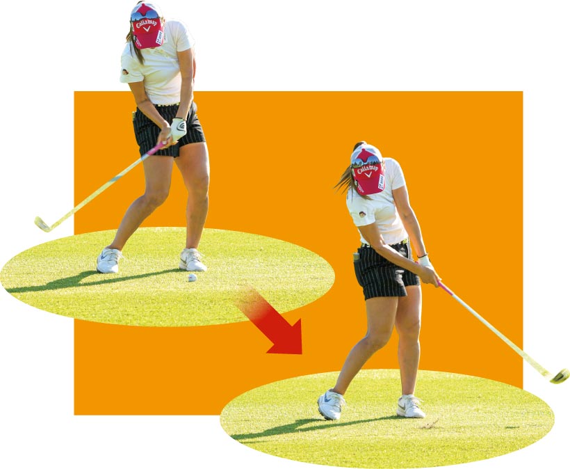 「PGAツアーとかパワーがある男子選手なら違うスイングもありだと思いますが、女子プロの場合はインサイドからクラブを下ろすスイングのほうがケガも少ないし、再現性も高くなります」(辻村)