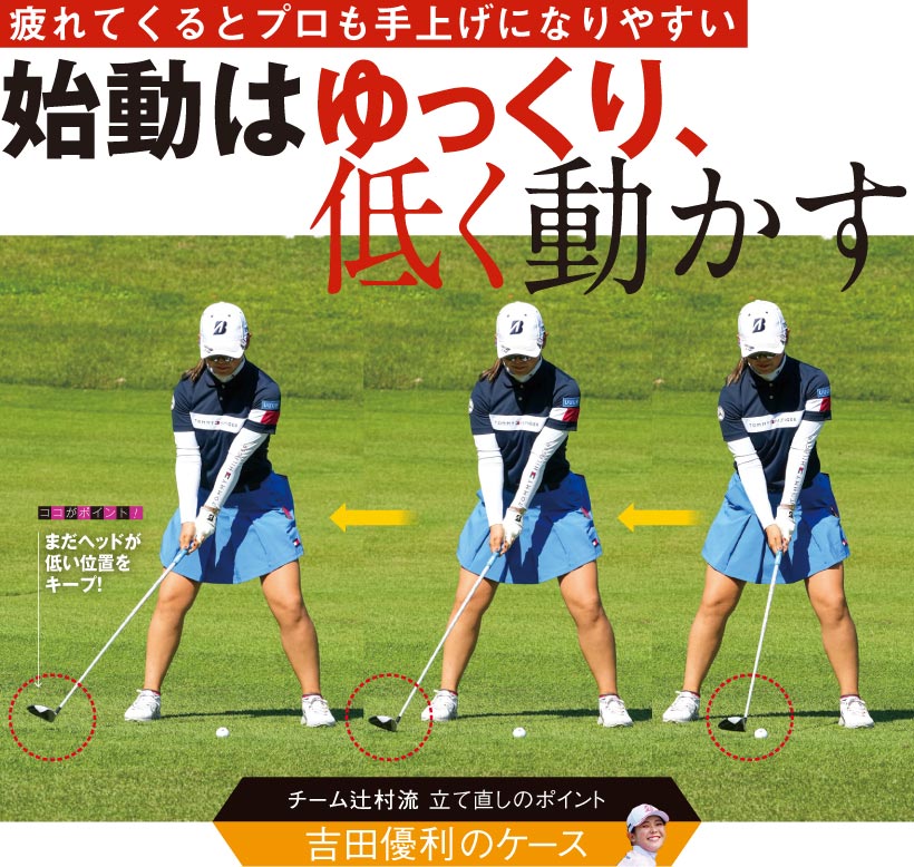 疲れてくるとプロも手上げになりやすい始動はゆっくり、低く動かす