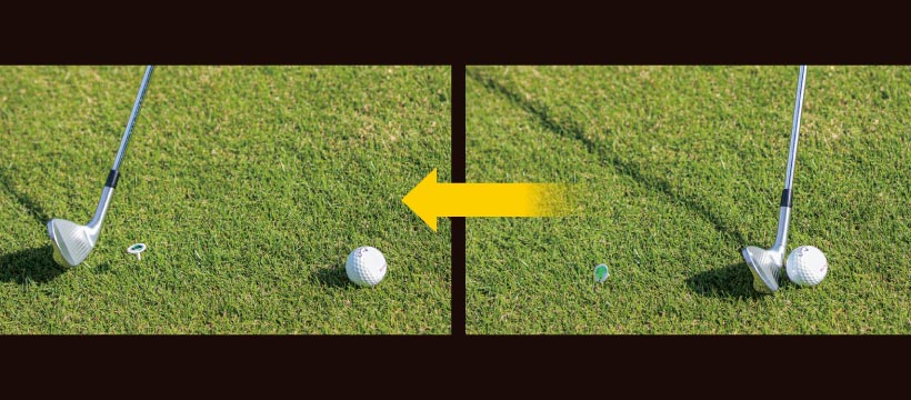 今の優利はテークバックもすごく低くなっていますが、体が疲れてくるとアマチュア時代からのクセでヘッドがすぐ高く上がってしまう。そんなときはヘッド後方にマーカーを置いてそれを飛ばす練習を徹底させています。