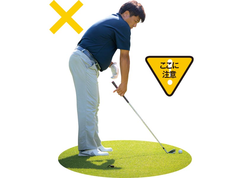 『ココがポイント!』右手を使いすぎると右に傾いてしまう