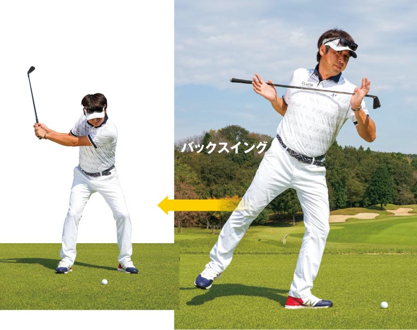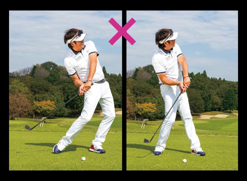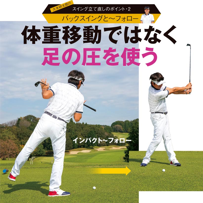 大本研太郎のスイング立て直しのポイント・2<バックスイングと~フォロー>体重移動ではなく足の圧を使う