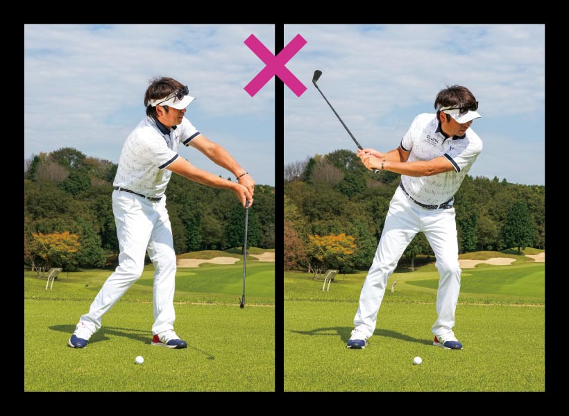 まず大事なのは、クラブの特性を利用できているかどうか。クラブは真っすぐ動かすとフェースが開く特性なので、「真っすぐ」を考えた時点でアウトです。