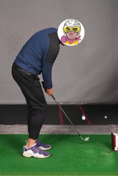 編集部員Kが試打。相変わらず下手くそそうな構えである。だが、やさしい性能を体感するにはうってつけの(ミスショットを自然に打てる)試打者である。