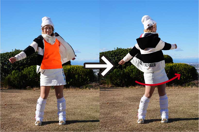 - スコアがまとまりにくい冬ゴルフは、スタート前の準備が重要!「もちけん」こと剣持江里加がレクチャー