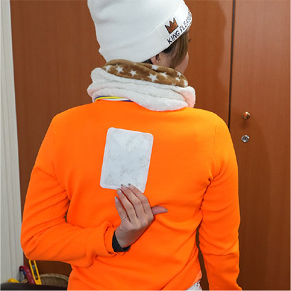 「うわ〜、めちゃくちゃ寒い!」という日は使い捨てカイロも必需品。貼る箇所は肩甲骨の間と腰がメイン。寒いと背中が丸くなってしまうけど、肩甲骨の間に貼っておくとポカポカ温まって背すじがピーンと伸びてきます。女性はお尻に貼るといいし、後ろのポケットに入れてもOK。