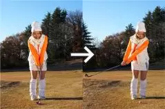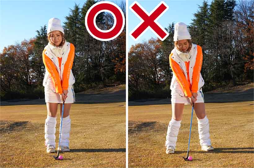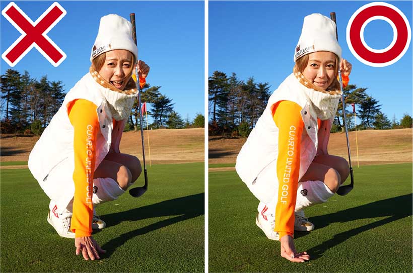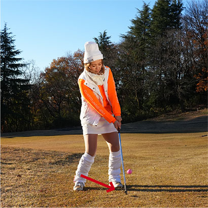 夏はサンドウェッジのアプローチが結構うまく打てて自信があったのに、冬はトップやチャックリばかり。冬のラウンドレッスンでは、そういう悪循環に陥ってしまう方がビックリするほど多いんです。夏場のコースは芝がキレイに生えていて、地面も柔らかめだけど冬場のコースは芝が薄い上に地面が硬い。サンドウェッジってソールが厚いですよね。だからボールの下の地面が硬いとソールが跳ね返されてトップになりやすいんですよ。ボールが上がらないから、上げようとして今度はチャックリに。