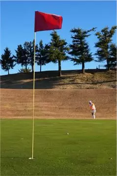 冬のアプローチが難しいのは、グリーン周りの地面やグリーンが夏よりもかなり硬くなっているためです。一番はボールを上げようとするとソールが跳ねてトップしやすいこと。そしてグリーンに乗ってからのコロがりがイメージしにくくて、距離感が合いにくいんです。