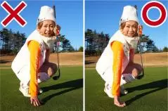 もう一つ大事なポイントは、ボールの落とし場所を安易に決めないこと。冬のグリーンはコチコチに硬くても、霜が降りていたらボールがコロがりません。でも霜が降りているグリーンって、霜の下は絶対に硬い。これはコースによってマチマチで、保温効果の高そうな厚めのシートを使っているグリーンは割と柔らかいですけど、大抵はコチコチ状態ですよね。そんなときにピンをデッドに攻めるのは絶対ダメ。グリーンをオーバーしちゃいます。