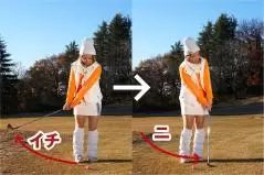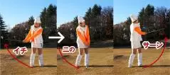 「イチ」で上げて、「ニ」でインパクトするリズムで低くコロがそう