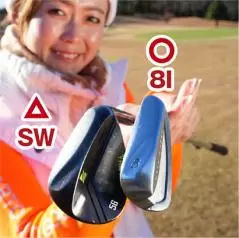基本は払い打ちですが、ボールを1個分内側にセットするだけで上から正確にとらえやすくなり、しかも打った後にソールが滑っていくから振り抜きがスムーズ。「ちょっとダフりそうだな」と思うと上から鋭角に打ちたくなるけれど、打ち込めば打ち込むほどソールが跳ねてトップになってしまうだけ。