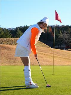 季節を問わずスタート前は練習グリーンでパットの練習をする人は多いでしょう。基本的には練習グリーンで、その日のコースグリーンの速さをテストするのが一番の目的。でも冬の場合は練習グリーンとコースグリーンの状態がまったく違うことが多くて、ほとんど参考にならないんです。なので練習グリーンでは10メートル近くのロングパットは少し打っておくだけにして、1メートルくらいの短いパットの練習を多くやって入るイメージをつかんでおくのがベスト。カップを狙うのもいいけれど、グリーンフォークを刺してそこに当てる練習がオススメ。グリーンの硬さに気を配るためにも、気持ちの準備をしておくのも大事ですよ。