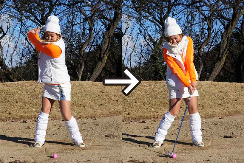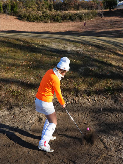 冬のバンカーは「フェースを開かず、フォローを低く」でバッチリ!
