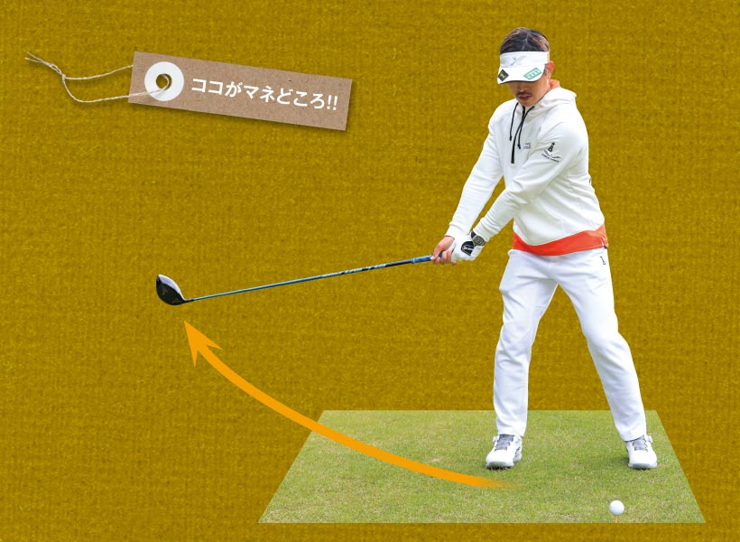 勝みなみ選手の場合、以前はクラブをカラダの近くで振ってインパクトする感覚だったそうです。それをバックスイングのイメージを、「大きく高く」と変えたことでダイナミックなスイングとなり、飛距離が大幅にアップしたと聞きました。