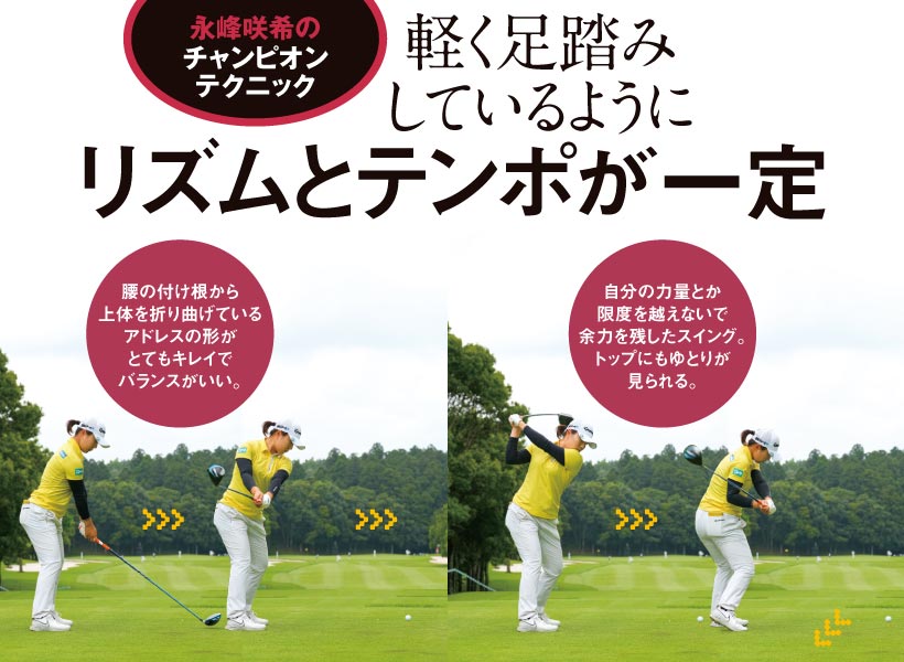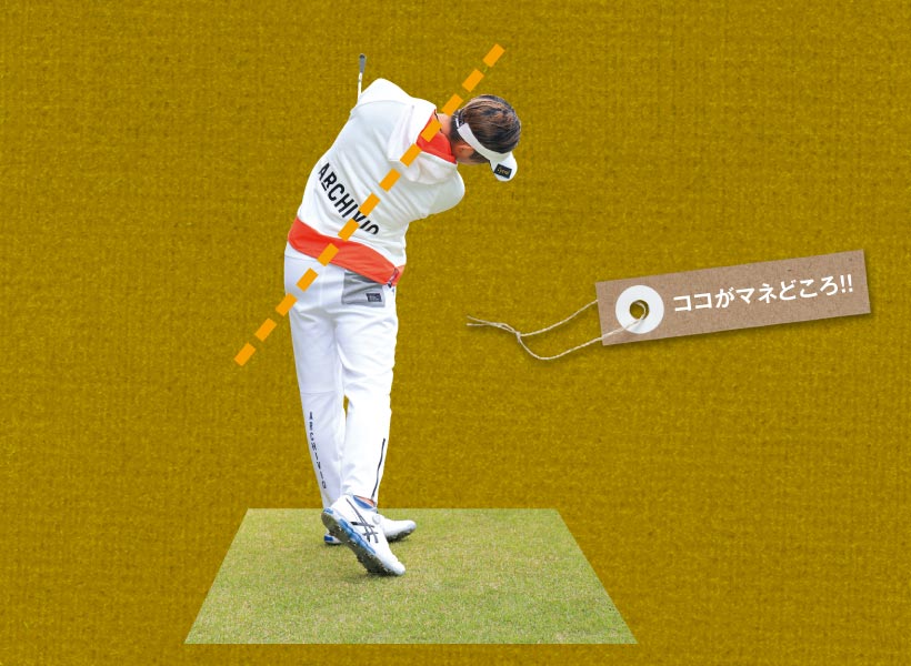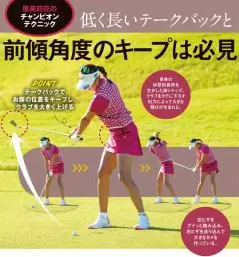 原英莉花選手は長身で手足が長く、ドライバーの飛距離はトップクラス。アイアンのキレも抜群です。原選手の長所はクラブヘッド低く長く引いているテークバックと、インパクト以降も前傾角度をキープしているところ。