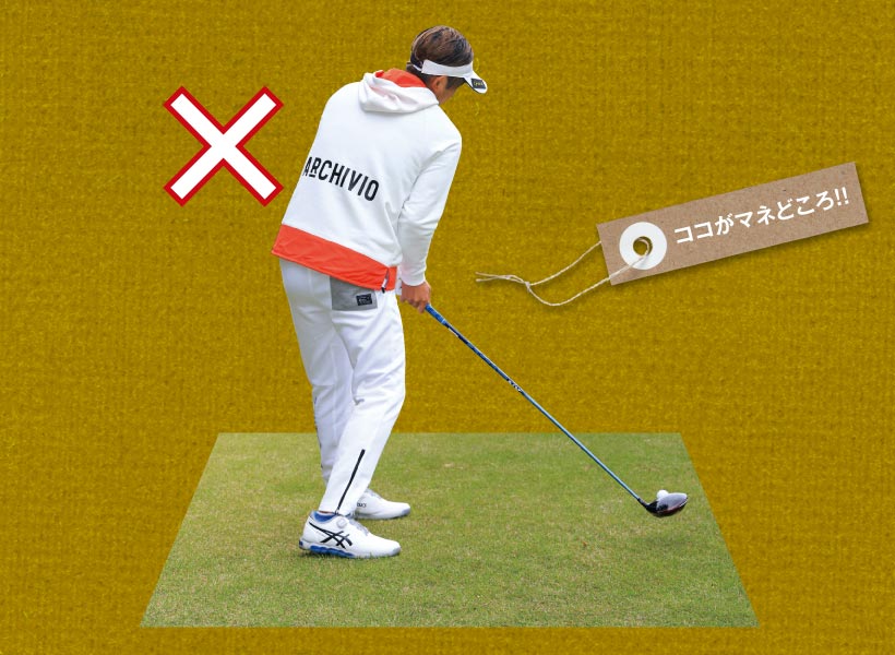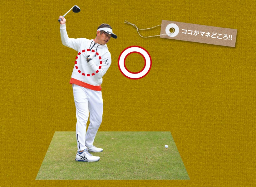 前傾角度をキープし、お腹だけをひたすら回す体幹スイング