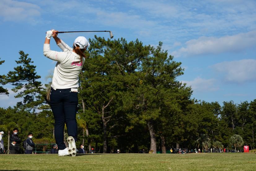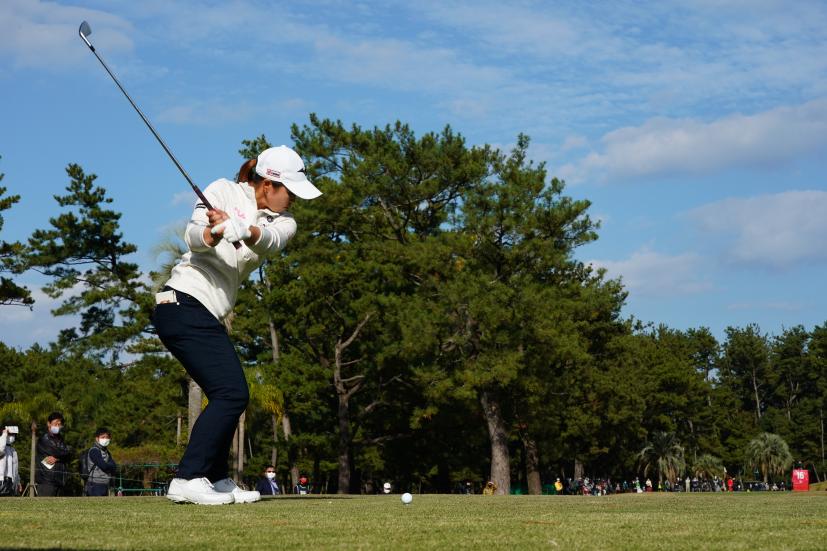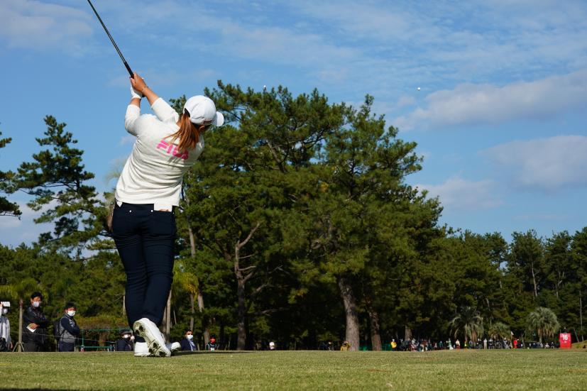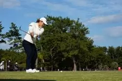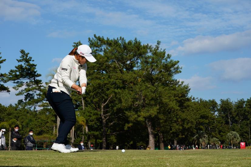 西郷真央 アイアン(ティショット)|フォロー①