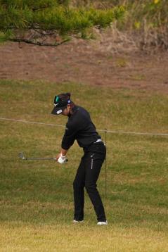 原英莉花 アイアンスイング(ラフ・斜め前)|バックスイング①