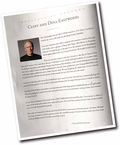 前書きはクリント・イーストウッドと妻のダイアナによるPGAツアーへの愛ある一文が掲載されている。