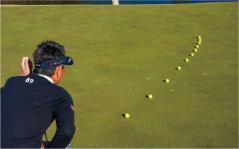 そこでカップではなく、ボールを狙って打ちます。ターゲットをより小さくするのがコツ。平らなストレートラインの1メートルくらい先にボールをセットし、「ボールのどの部分にどのくらいの強さで当てるか」を具体的に決めます。