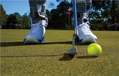 距離は1メートル前後。セットしたボールのどこにどのくらいの強さで当てるかを明確にする。