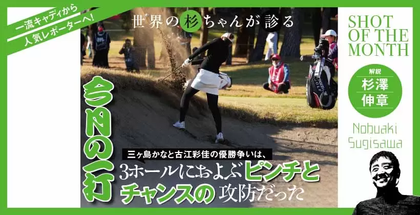そして16番パー3では先に打った古江選手が右のバンカーに入れてしまいます。三ヶ島選手も左のラフに外しましたが、そこから劇的なチップインバーディを決めて優勝を決定づけました。