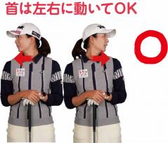スイング中、首は左右に動いてもOK! 首をガチガチに固定しようとすると上半身が回りにくくなってしまう。