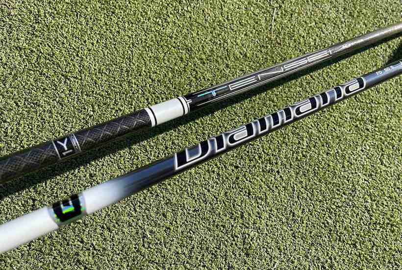 TENSEI Pro White 1Kの50Sとちょっと打ち比べてみましたが、つかまりや振りやすさの面で、僕はDiamana PDのほうが良いな~と感じました。重量的にはPDの50Sとほぼ同じなのですが、しなり感が少ない感じ。TENSEIはやはり少し僕のヘッドスピードではハードで、けっこうしっかりと振らないとつかまらないし、飛距離も出ないんですよね。その点、このPDはもっとしなやかにしなってくれて、気持ちよく振り切れる。シャフトが仕事してくれる感じでしょうか。つかまりもPDのほうが良いですね。