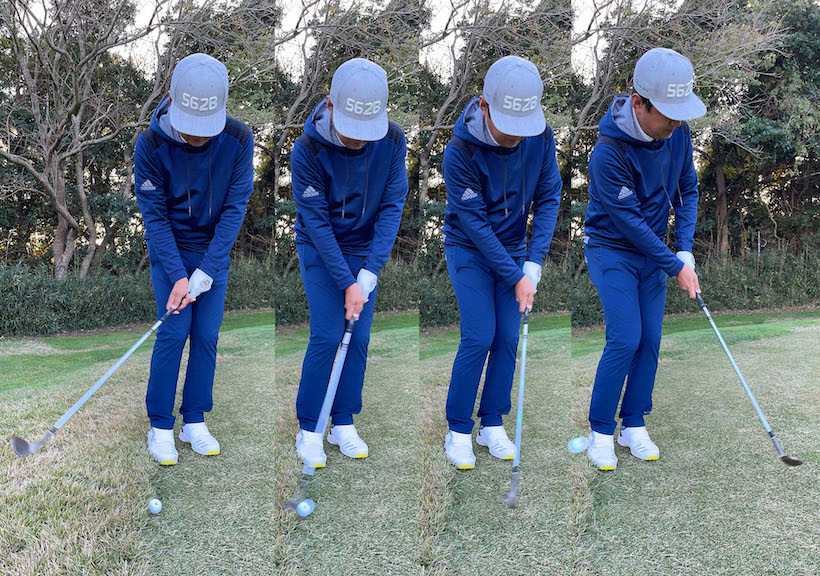 まずは「X」でアプローチ。ドライバーと同様に打感の柔らかさを感じます。フェースとひっついている感じが現行モデルよしもほんの少しあって、打ち出しが少しだけ低くなりました。その分スピンも少しかかりやすくなっているんじゃないでしょうか。現行モデルもそうですが、出球のスピードがゆっくりな感じがして、距離感が出しやすいんですよね。現行モデルよりも感触が良くなっているので、このあたりは何か新しいテクノロジーが採用されているのかも。