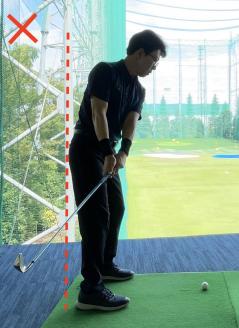 バックスイングのときに体が沈み込むと、ダウンスイングで伸び上がったり、起き上がったりするのでエラー動作です。