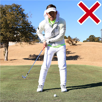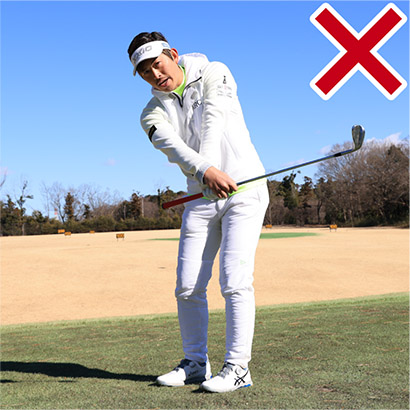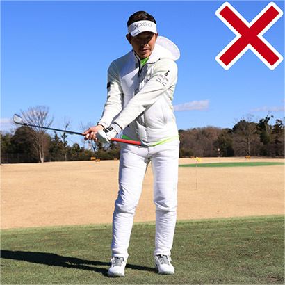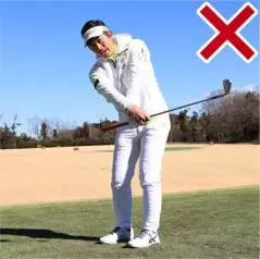 ・アプローチのミスは手で打とうとするのが原因
