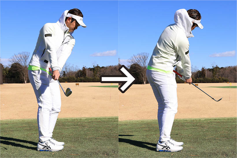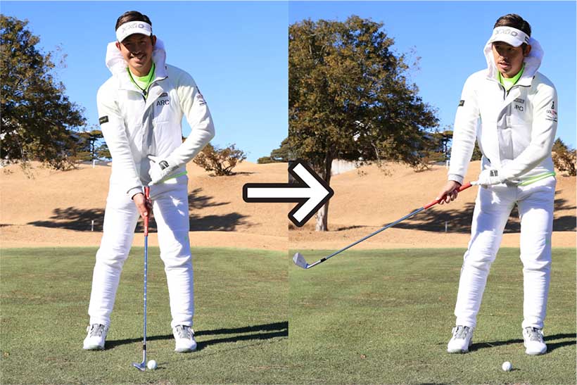アプローチはグリップエンドとお腹の同調が決め手!