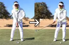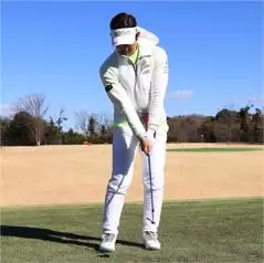 グリップエンドをお腹につけて素振りする練習はアプローチの上達に大きな効果があります。「こう振ればいいんだ!」と納得できるはずですし、これだけやっておけばチャックリやトップが出ないスイングが確実に身につきます。この基本的な動きをマスターしておかないと、アプローチの距離感も身につかないのです。グリップエンドとお腹の距離を変えないで8時〜4時のスイングで打てばキャリーが何ヤード出るのか。グリップエンドとお腹を連動させて9時から3時までの大きさで打ったら何ヤード飛ぶのか。正しいスイングで自分なりの距離感を把握してください。