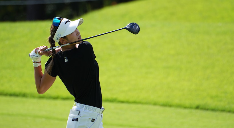 原英莉花のドライバースイング(斜め前)連続写真。2019年に初優勝、2020年は国内メジャー2冠、そして2021年シーズン終盤に涙...