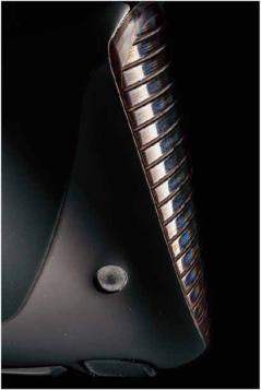 「前作の『SIM2』ではクラウン部分に6層、ソールに9層のカーボンシートを重ねていますが、それくらいではフェースにボールが当たる際の衝撃に耐えられません。だから『ステルス』では60層におよぶカーボンシートを精巧に組み合わせる構造によって耐久性を高めました。さらに水滴の問題に関しては60層のカーボンフェースの上からナノレベルの表面加工を施したポリウレタン樹脂をコーティングすることで、濡れたときでもスピン量を安定させることに成功しました。この樹脂をコーティングすることはカーボンウッド開発の大きなブレークスルーになったと思います」