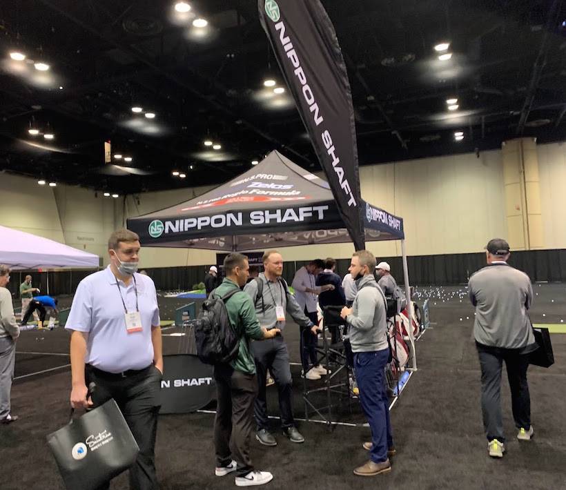 例年、ほとんどのゴルフメーカーが参加するPGAマーチャンダイズショーだが、驚いたことに今年はメジャーなゴルフクラブメーカーのブースは一つもなし。テーラーメイド、キャロウェイ、ブリヂストン、スリクソン、ナイキ、コブラなど、ひとつもブース出していなかった。ゴルフファンがよく知っているギアブランドで出していたのはパワービルト(POWER BILT)くらい。なお、試打ブースではブリヂストンのボール試打や、日本シャフトの試打コーナーがあった。