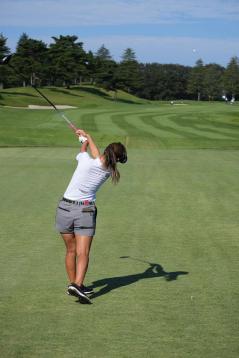 上田桃子のラフからのユーティリティスイング連続写真。2006年のルーキーイヤーから注目を集め、2007年には年間5勝をあげて早...
