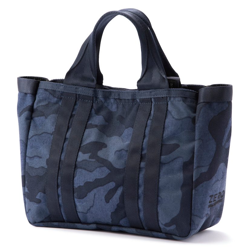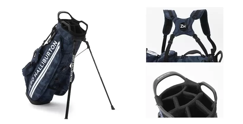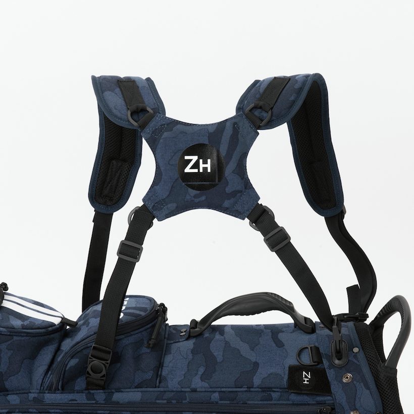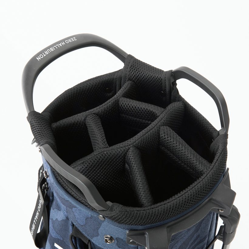控えめな色合いのカモフラ柄とシンプルなロゴとのコンビネーションが絶妙な、スタンド型キャディバッグ。本体の素材には「コーデュラナイロン1000dn」という耐久性に優れた素材を使用。同じ素材を使用したトートバッグやシューズケースなどとおそろいにして、トータルコーディネートを楽しもう。キャディバッグ(ZHG-CB1)価格/66,000円