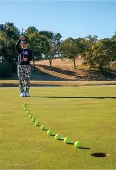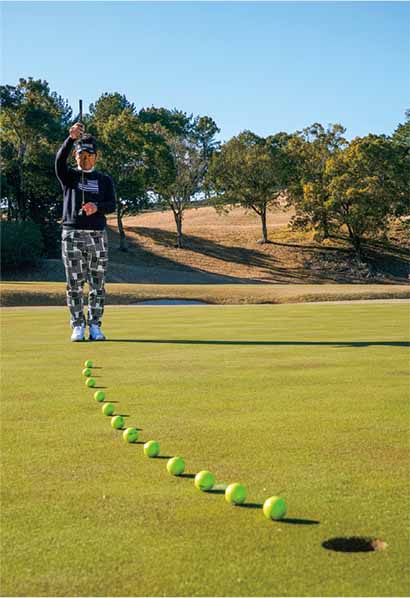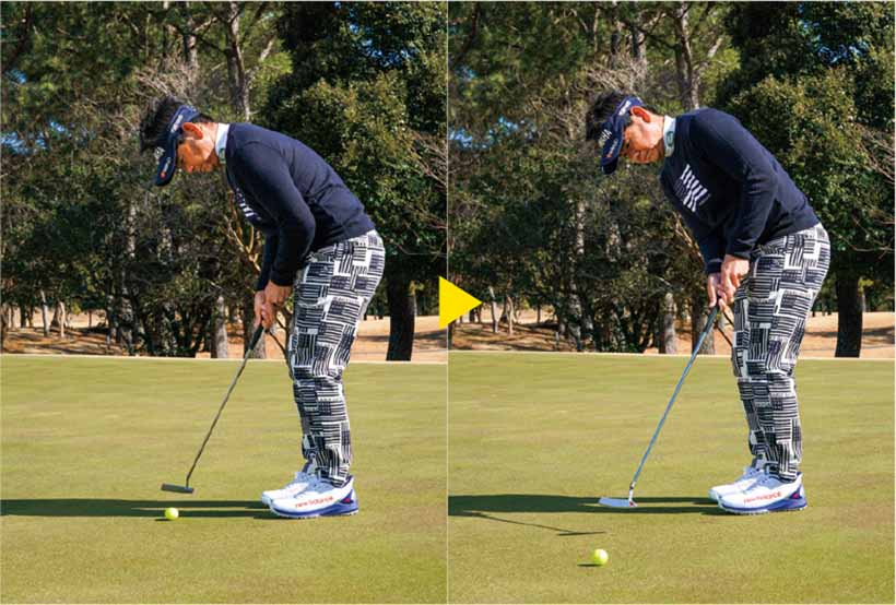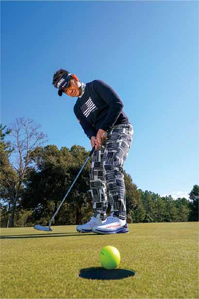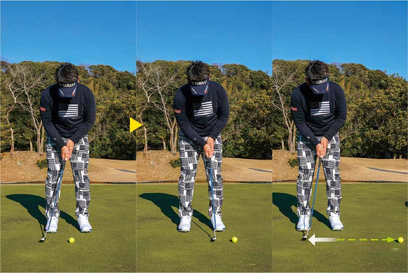 ジャストタッチではなく、「カップをややオーバーさせる」くらいの距離感で打つのが藤田流。オーバーさせれば返しのパットåは上りになる。ショートして次打も下りになるのが一番やってはいけないミス。